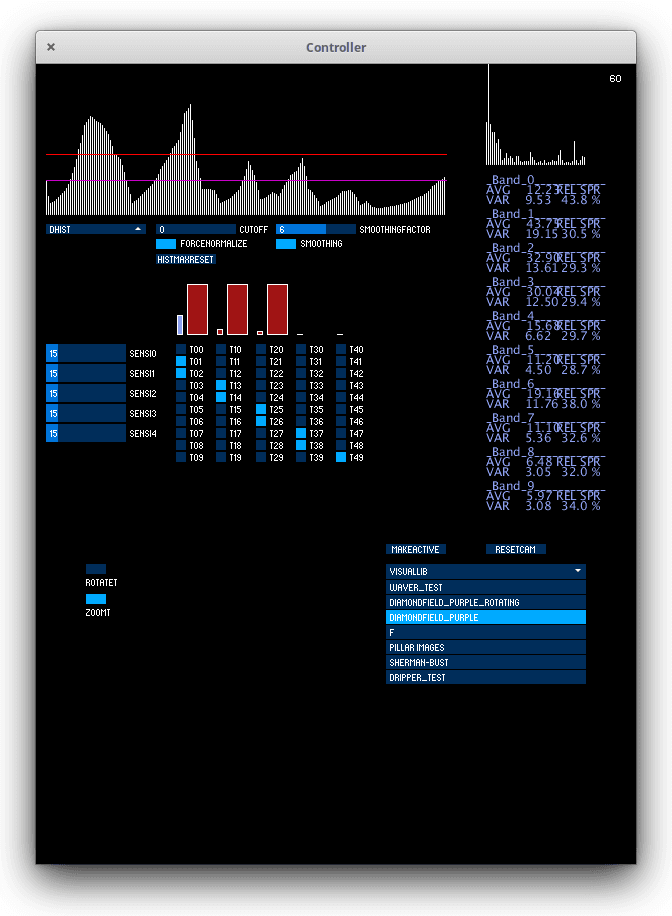 This program analyzes an audio-stream in realtime and produces various generative visuals.