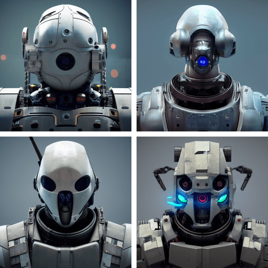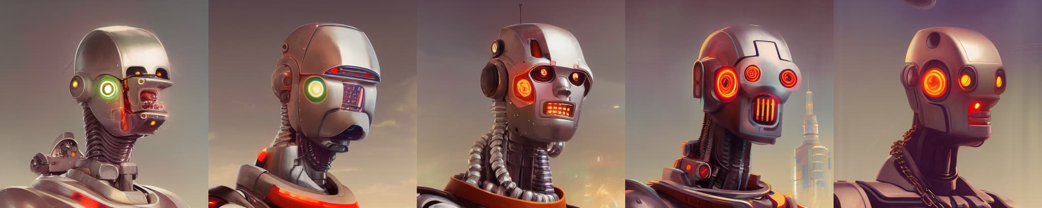 Back to the drawing board. We got rid of the init templates and decided to finetune our prompt. We got a bit sidetracked by a robot corner of the latent space: